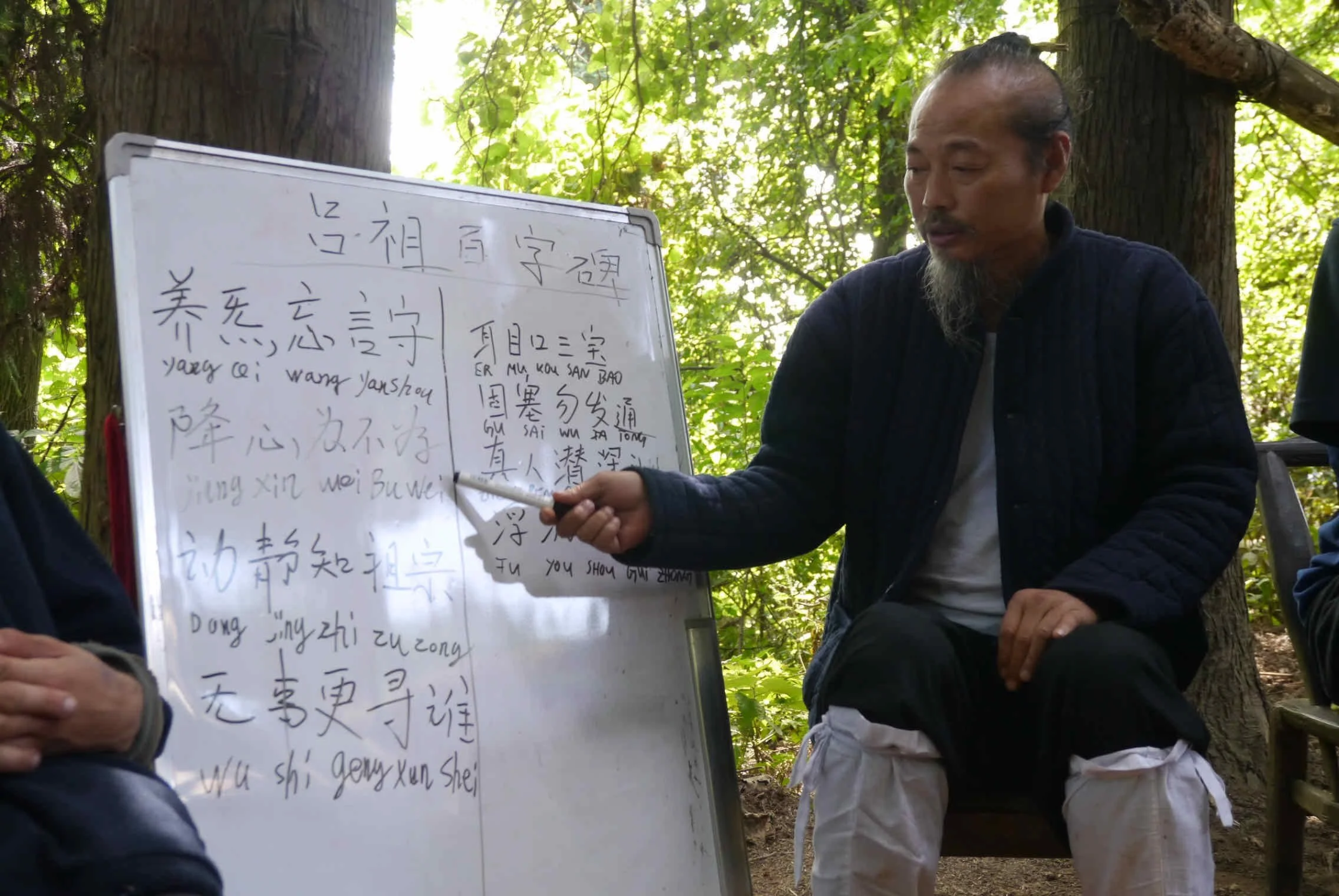 Les après-midi seront consacrées à l'étude théorique de la culture taoïste de Wudang : histoire de Wudang, développement du Tai Ji Quan, règles et conditions pour la pratique du Tai Ji Quan, conduite et vertu martiale, étude des écritures taoïstes (龙门心法Long Men Xin Fa Méthodes du coeur de la Porte du dragon; 阴符经 Yin Fu Jing Ecriture du talisman caché ; 吕祖百字碑 Lü Zu Bai Zi Bei Tablette aux cent caractères de l'ancêtre Lü).